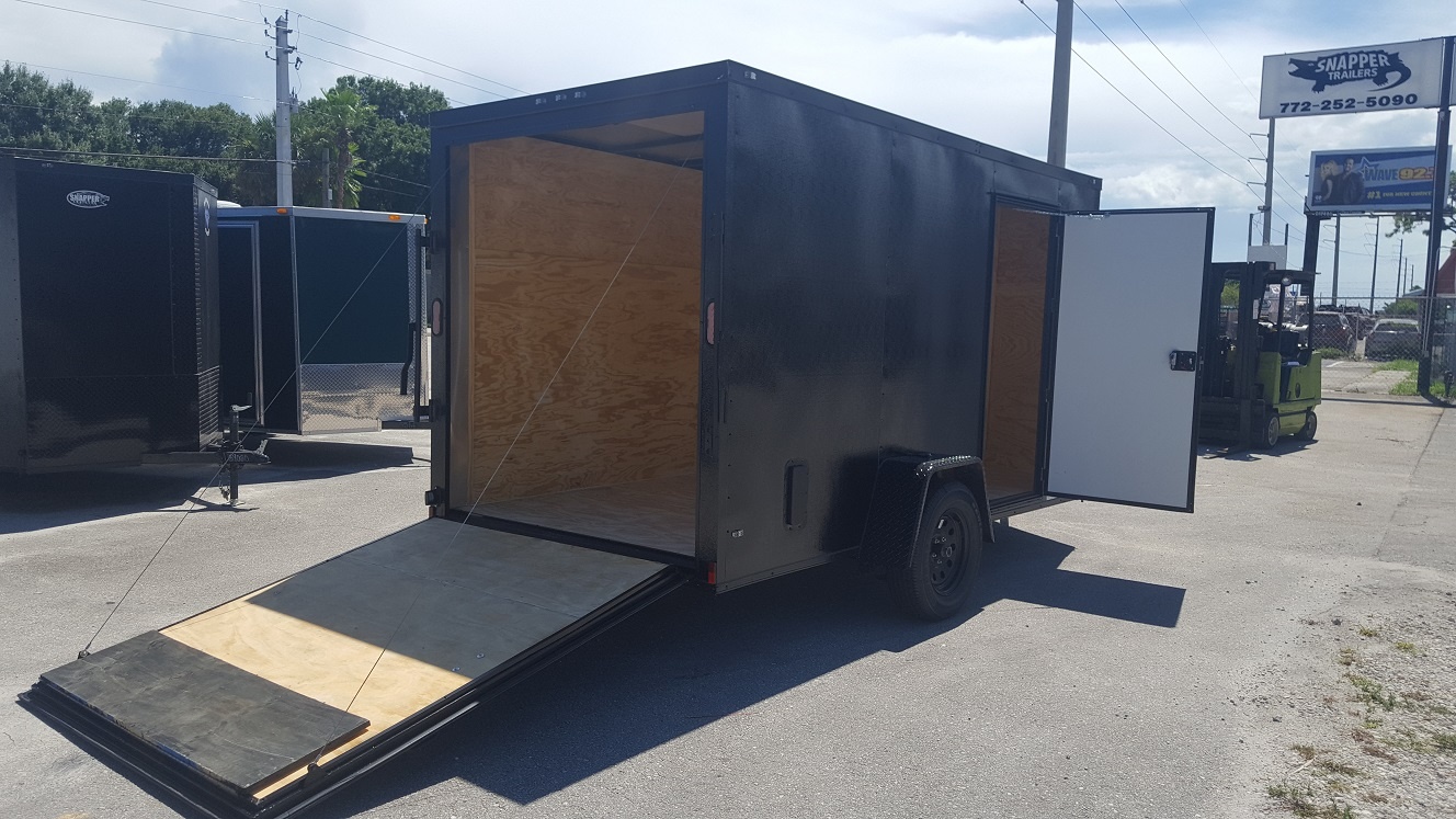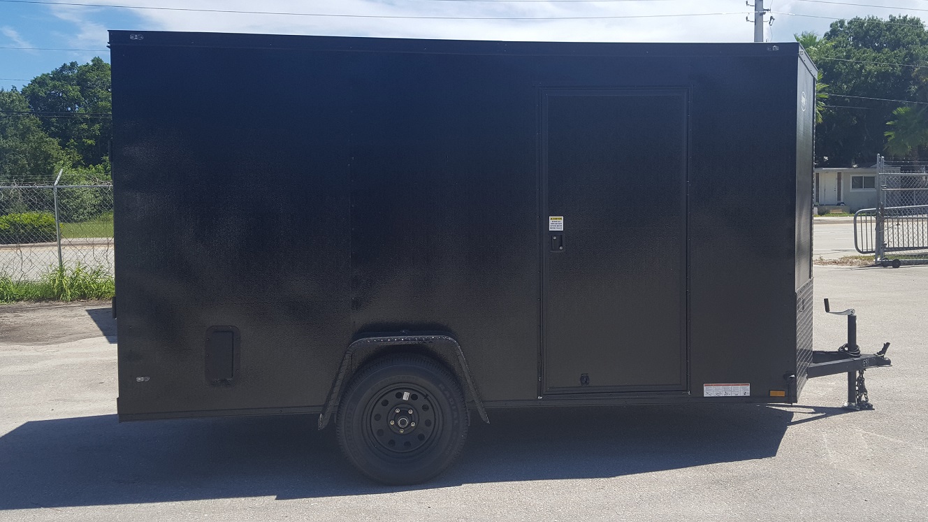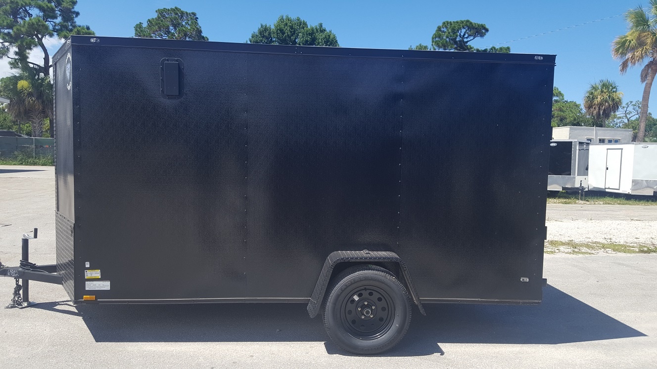Custom 6×12 Single Axle Trailer – Black Embossed Exterior with Rear Ramp, Flush Lock Side Door, 3in of Extra Height, Black Aluminum Sidewall Vents, Blackout Package
