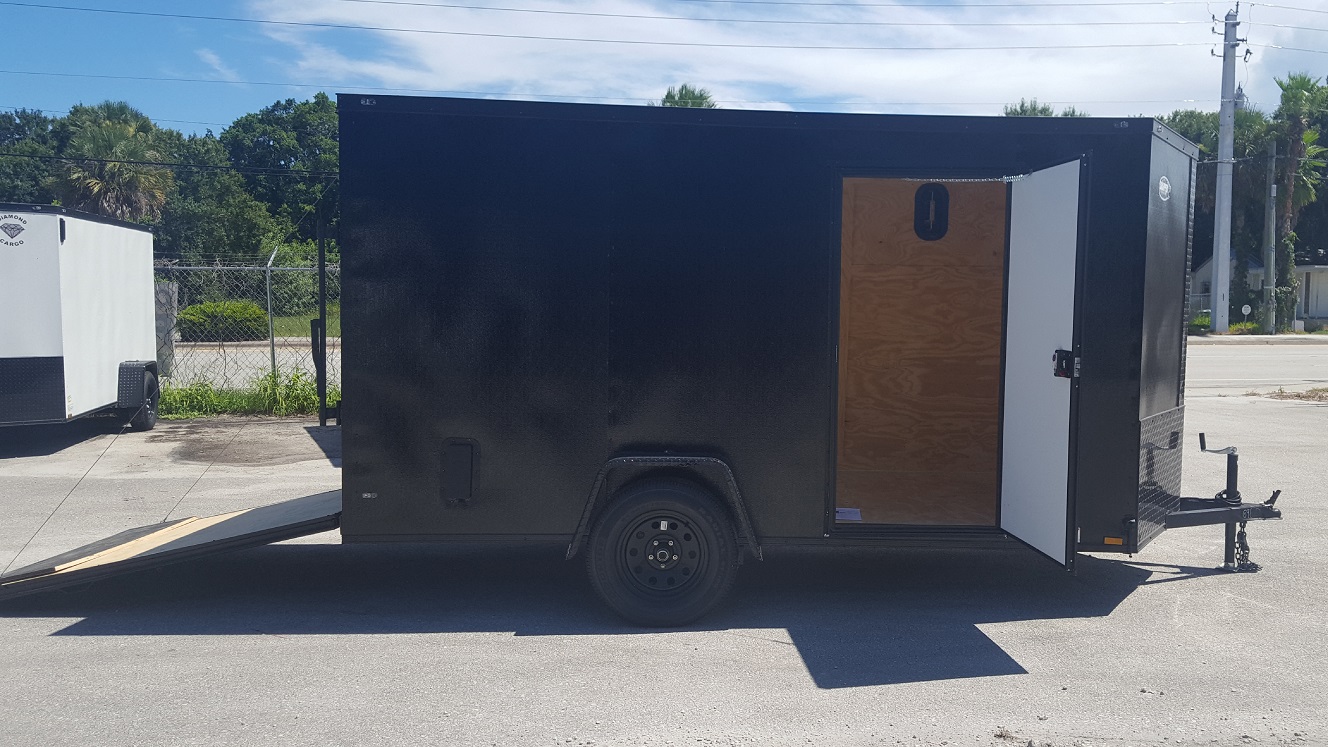 Diamond Cargo 6×12 SA Trailer – Black, Ramp, Side Door, Extra Height, Blackout