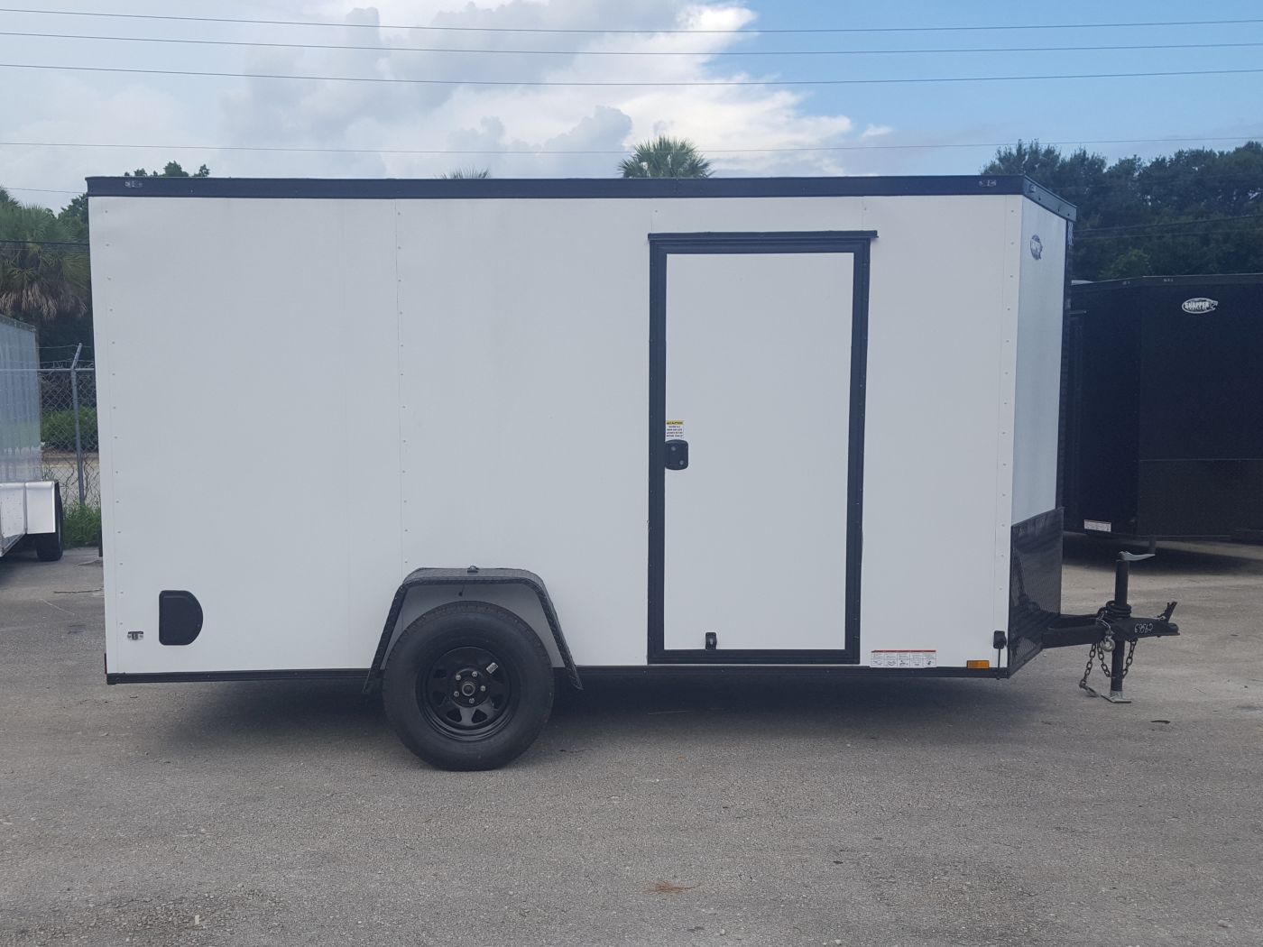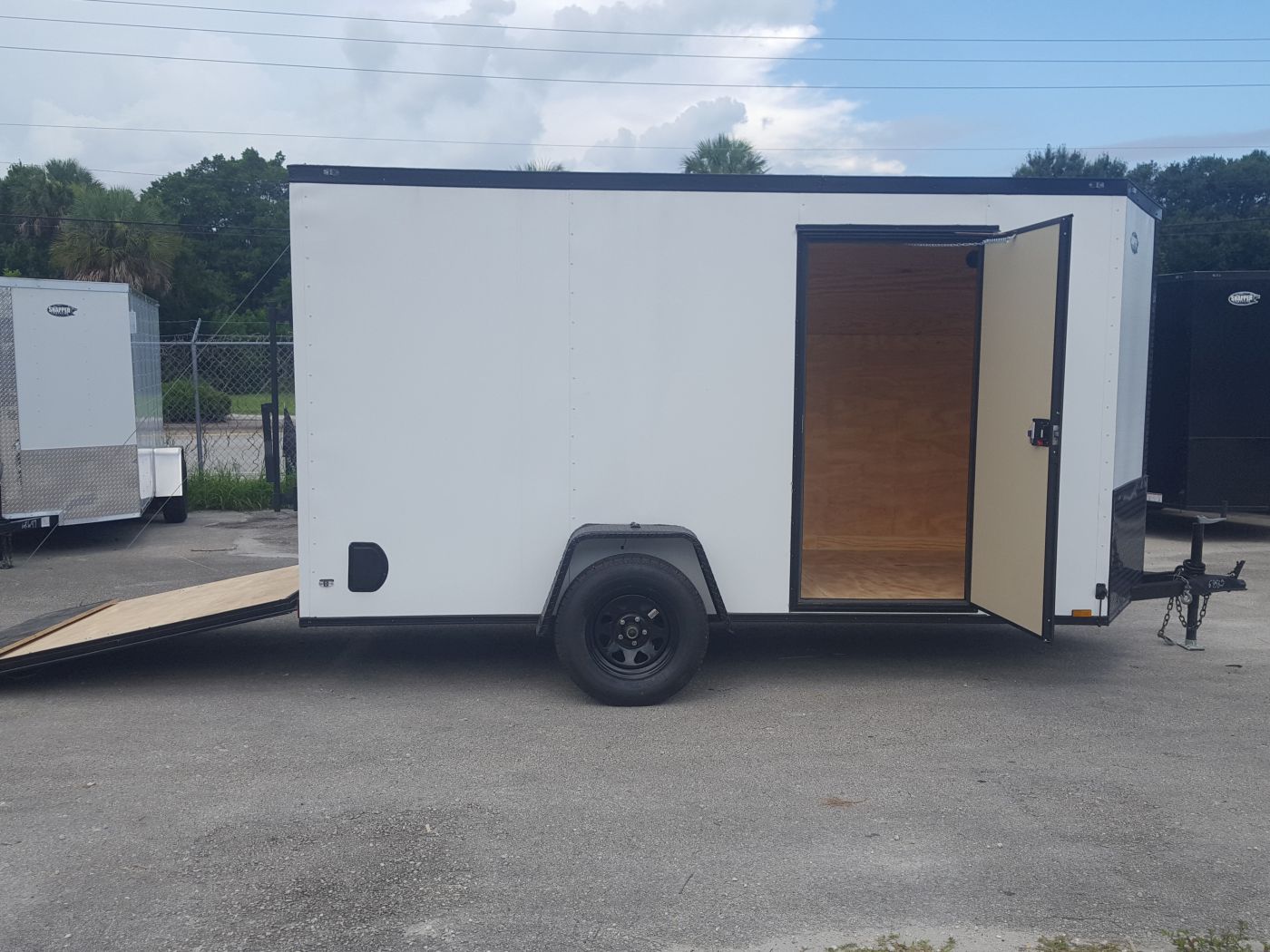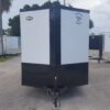 – Black Out Package – Includes Trim Around All Doors, Trim at Top and Bottom of Trailer, Stone Guard, and Vertical Trim on V-Nose, Black ATP Fenders (Does Not Include Wheels or Roof Vent) (4, 5 and 6 Wides)
