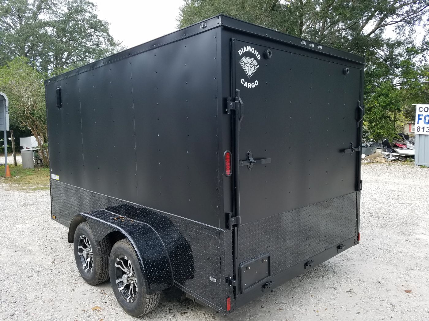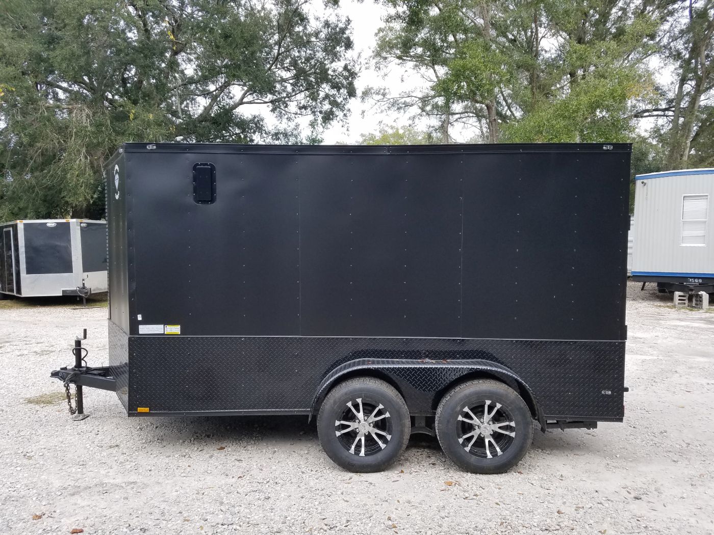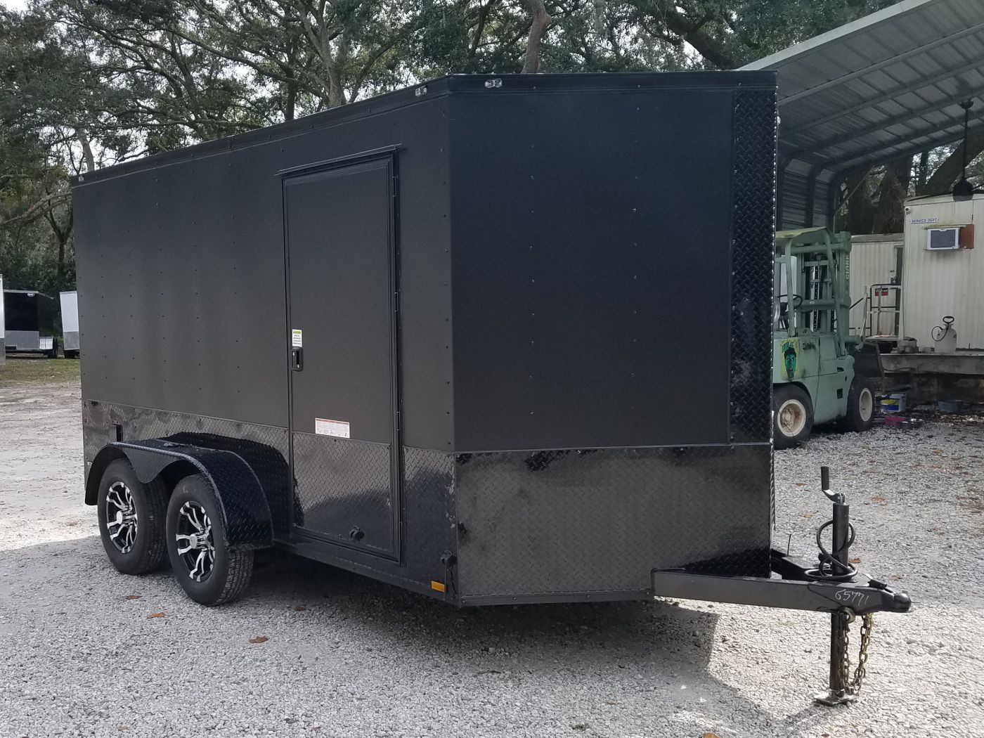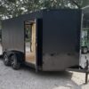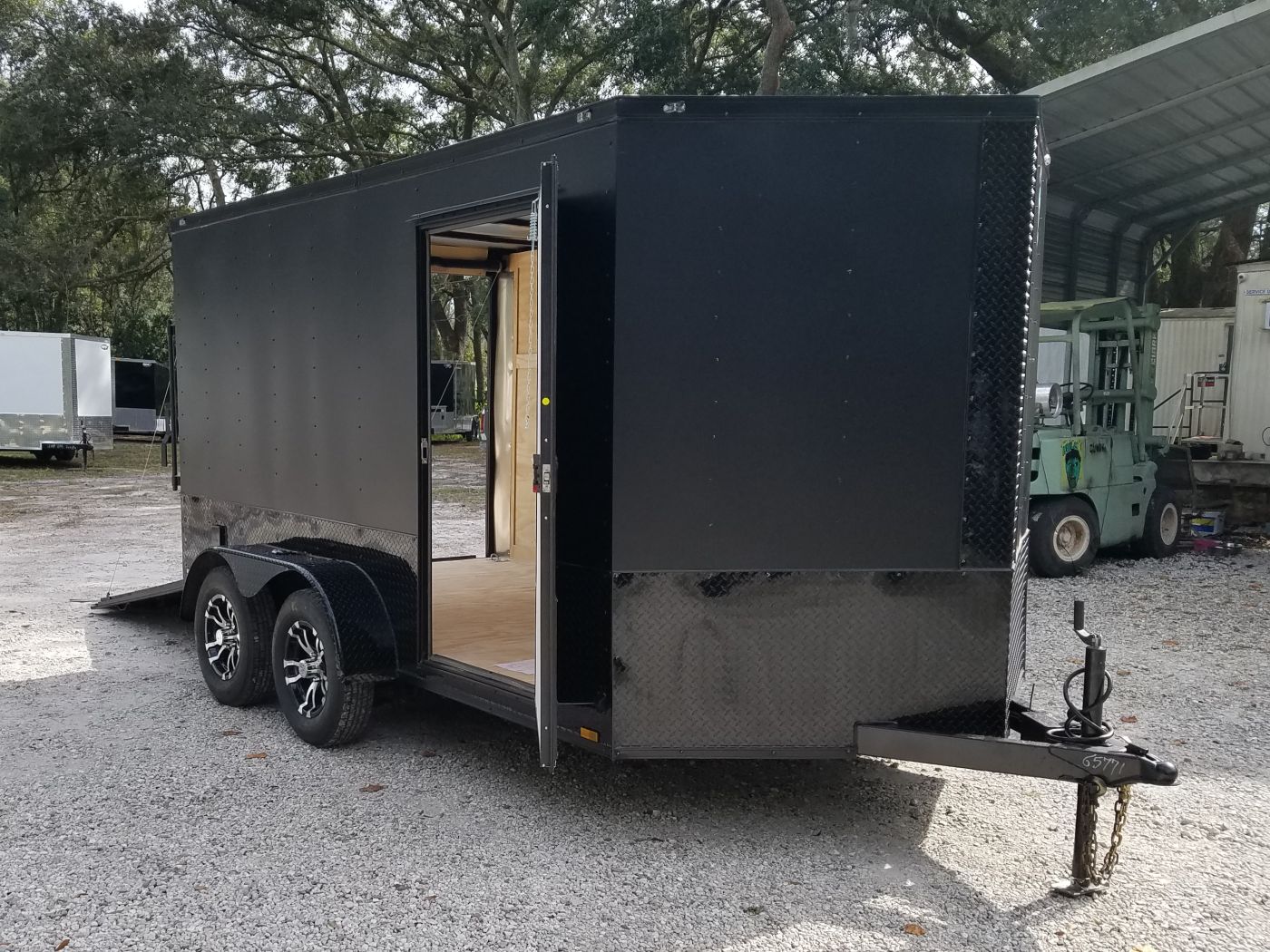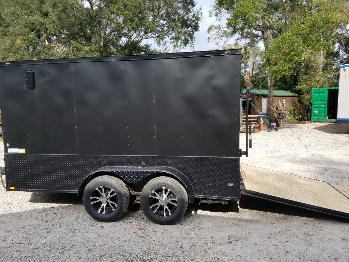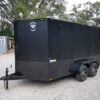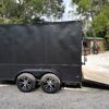 – Black Out Package – Includes Trim Around All Doors, Trim at Top and Bottom of Trailer, Stone Guard, and Vertical Trim on V-Nose, Black ATP Fenders (Does Not Include Wheels or Roof Vent) (7 Wides)