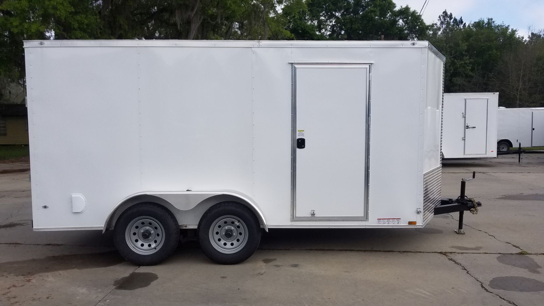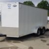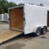 Standard 7×14 Tandem Axle Trailer – White with Rear Ramp Door, Side Door with Flush Lock, and an Extra 3in of Height