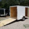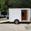 Standard 6×10 Single Axle Trailer – White with a Rear Ramp, RV style Side Door, 15×30 Window, 4 D-Rings and 3in Extra Height