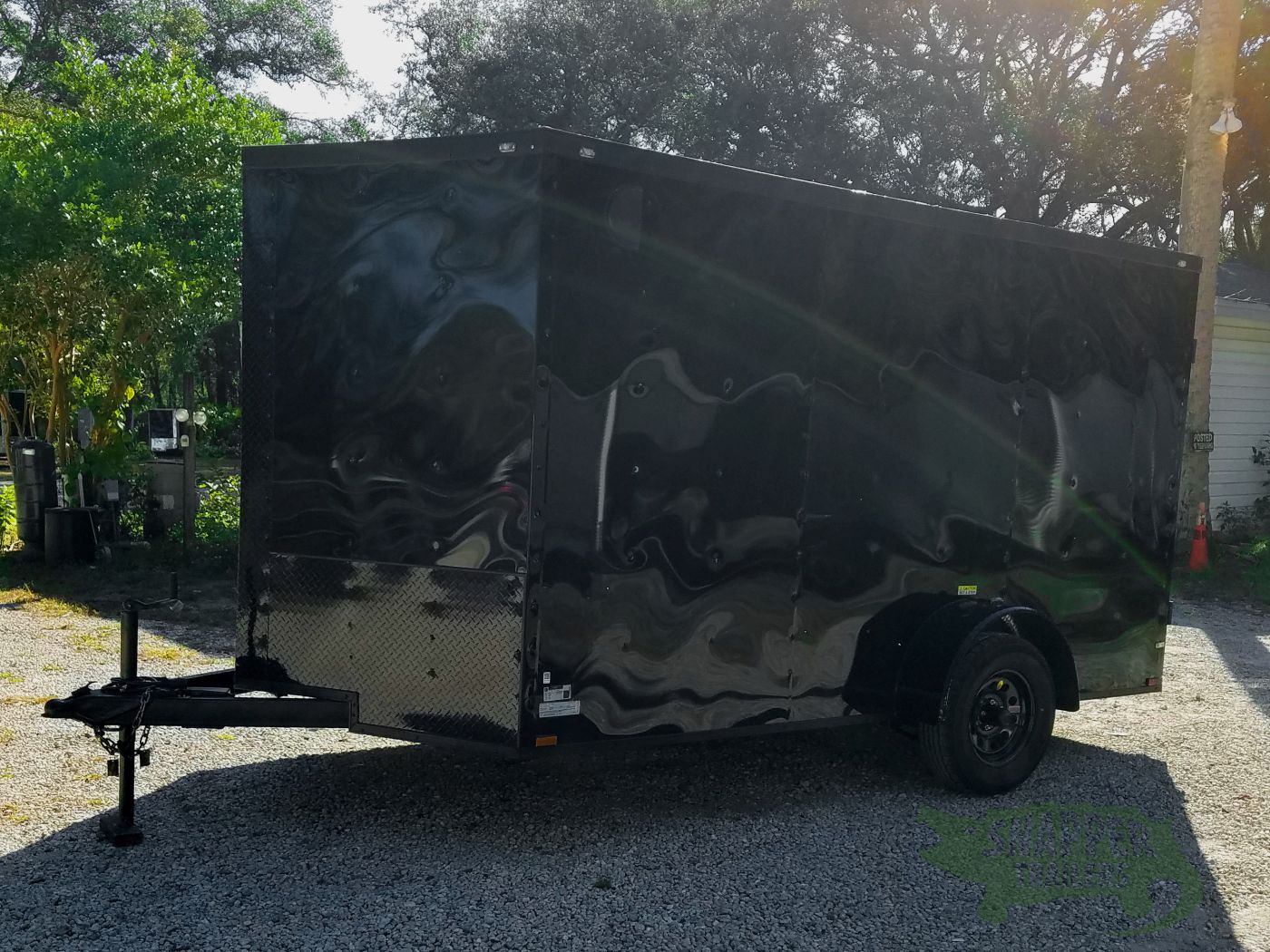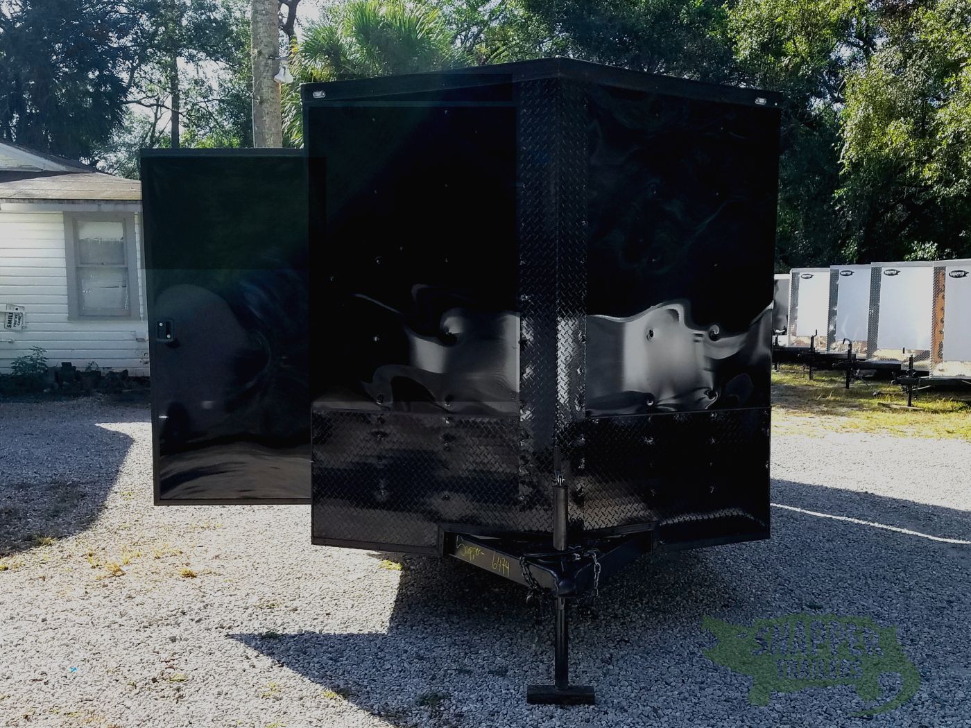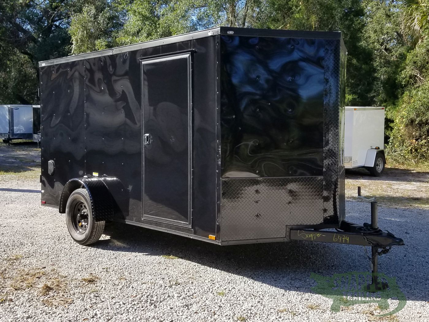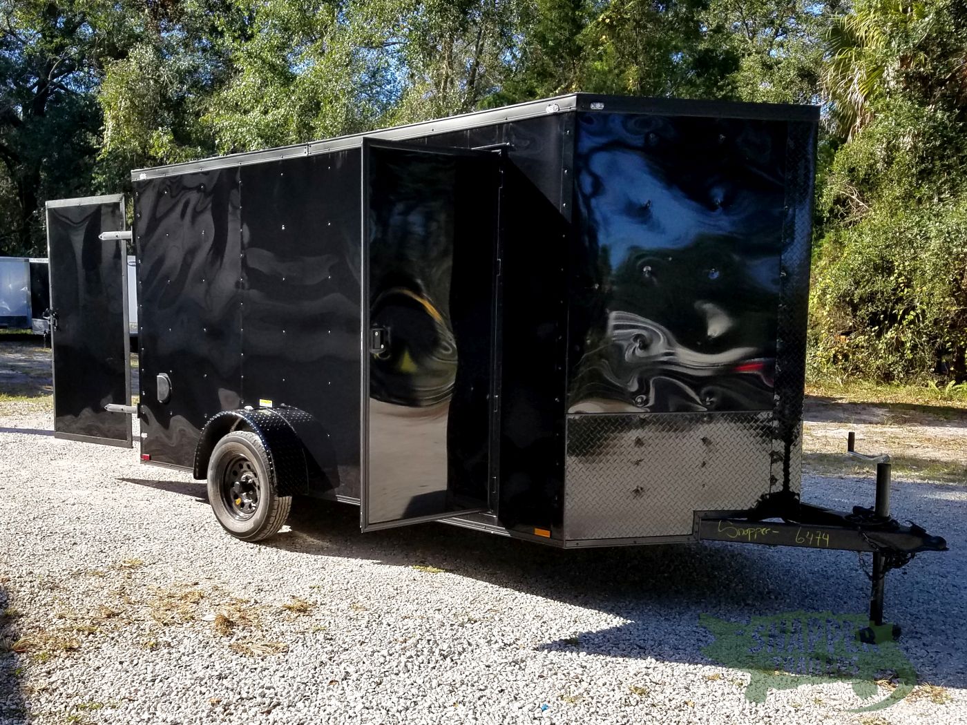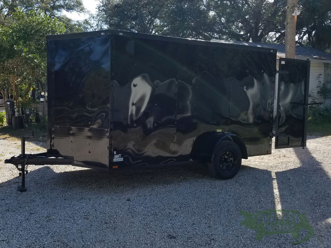 Quality Cargo 7×12 SA Trailer – Black with Blackout Package, Barn Doors, Side Door, Brakes, Extra Height