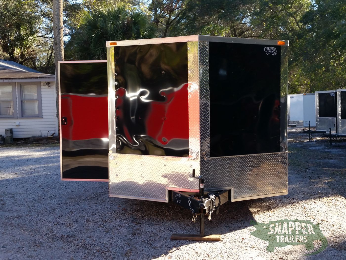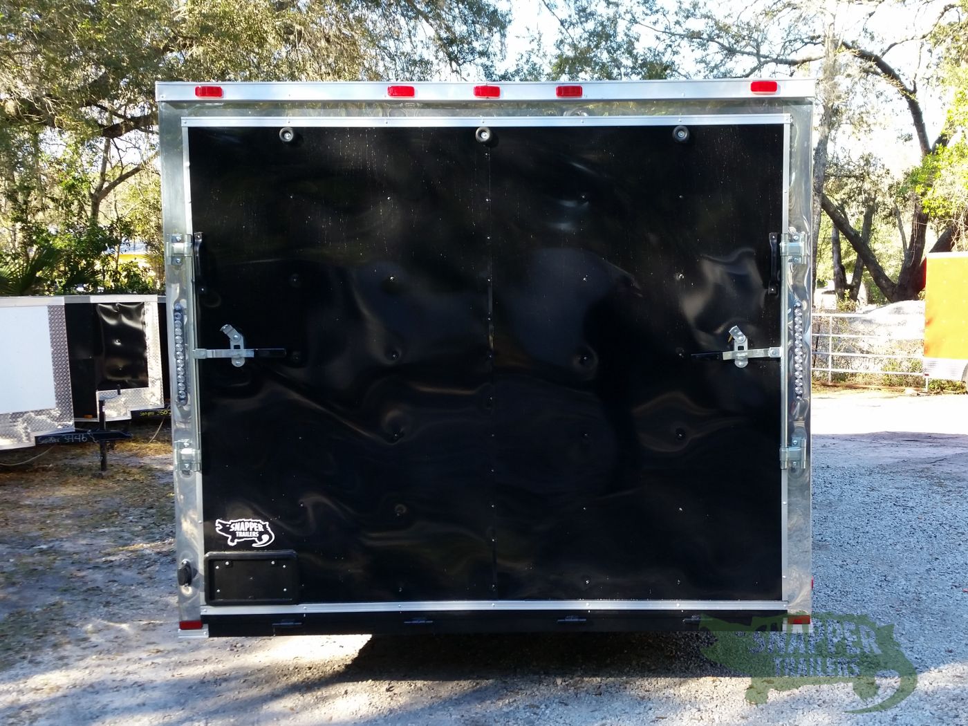 Standard 8.5×20 Tandem Axle Trailer – Black with a Rear Ramp, Side Door with Flush Lock, and 4x Floor Recessed D-Rings