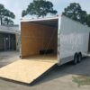 Standard 8.5×24 Tandem Axle Trailer – White with a Rear Ramp, Side Door with Flush Lock, 4x Floor Recessed D-Rings, 5,200 lbs. Axles, and 6in Extra Height