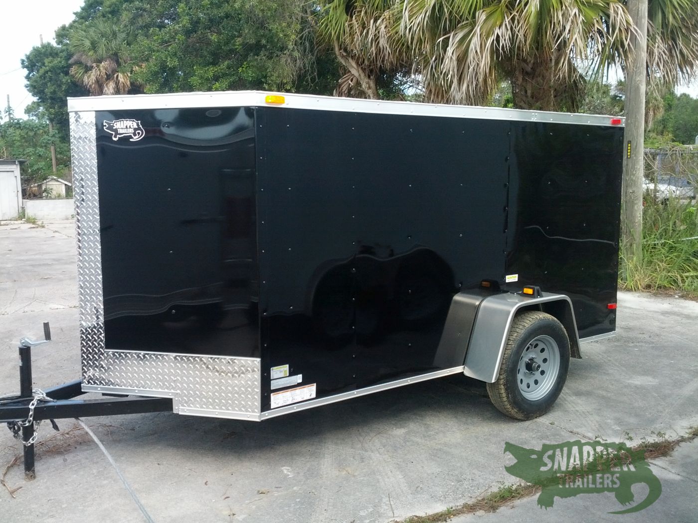 Enclosed 5×10 Cargo Single axle trailer 2990lbs leaf spring axle Midnight Black Color Full 10ft long walls for hanging your equipment Fold down ramp door