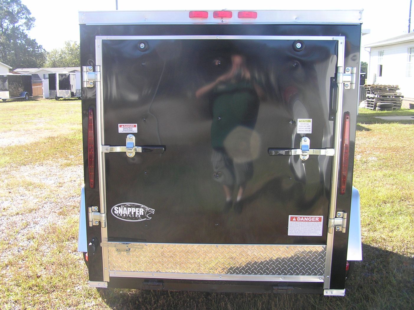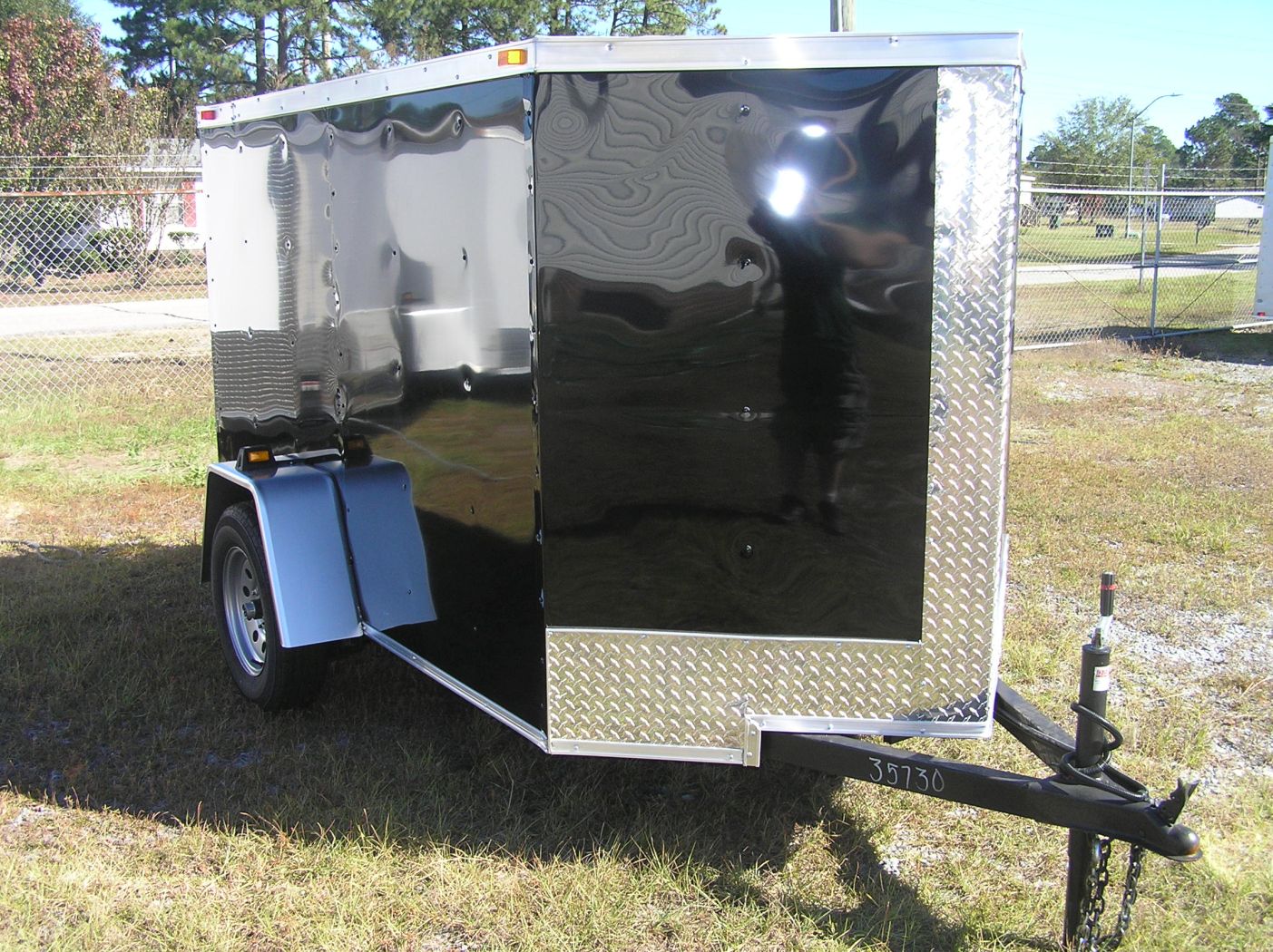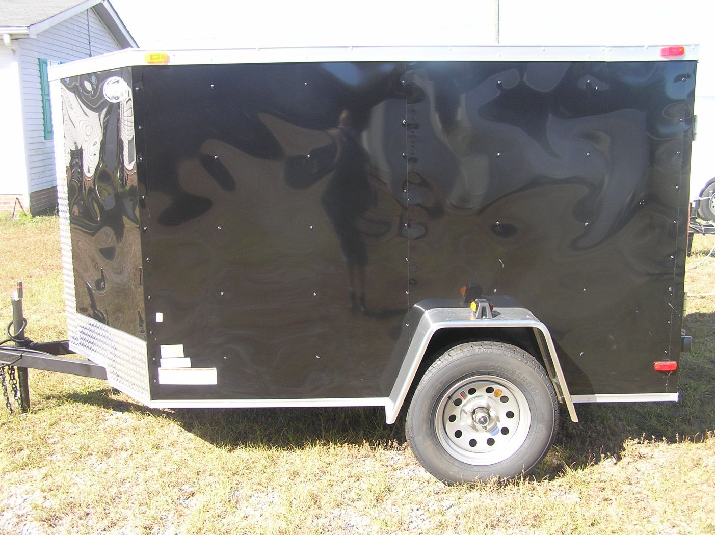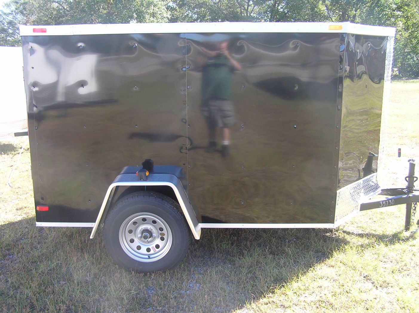 Midnight Black 5×8 single axle. Comfort low drag design with a Vfront. Plywood interior w/ a easy to use rear spring assisted ramp door w/ secure bar locks.
