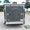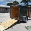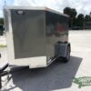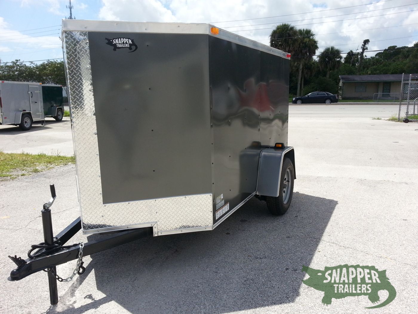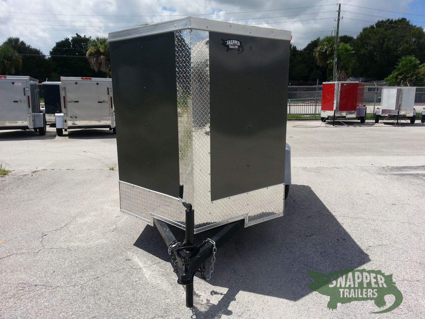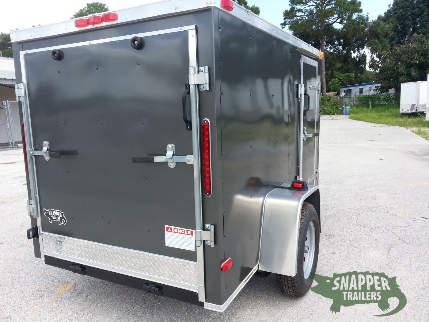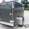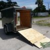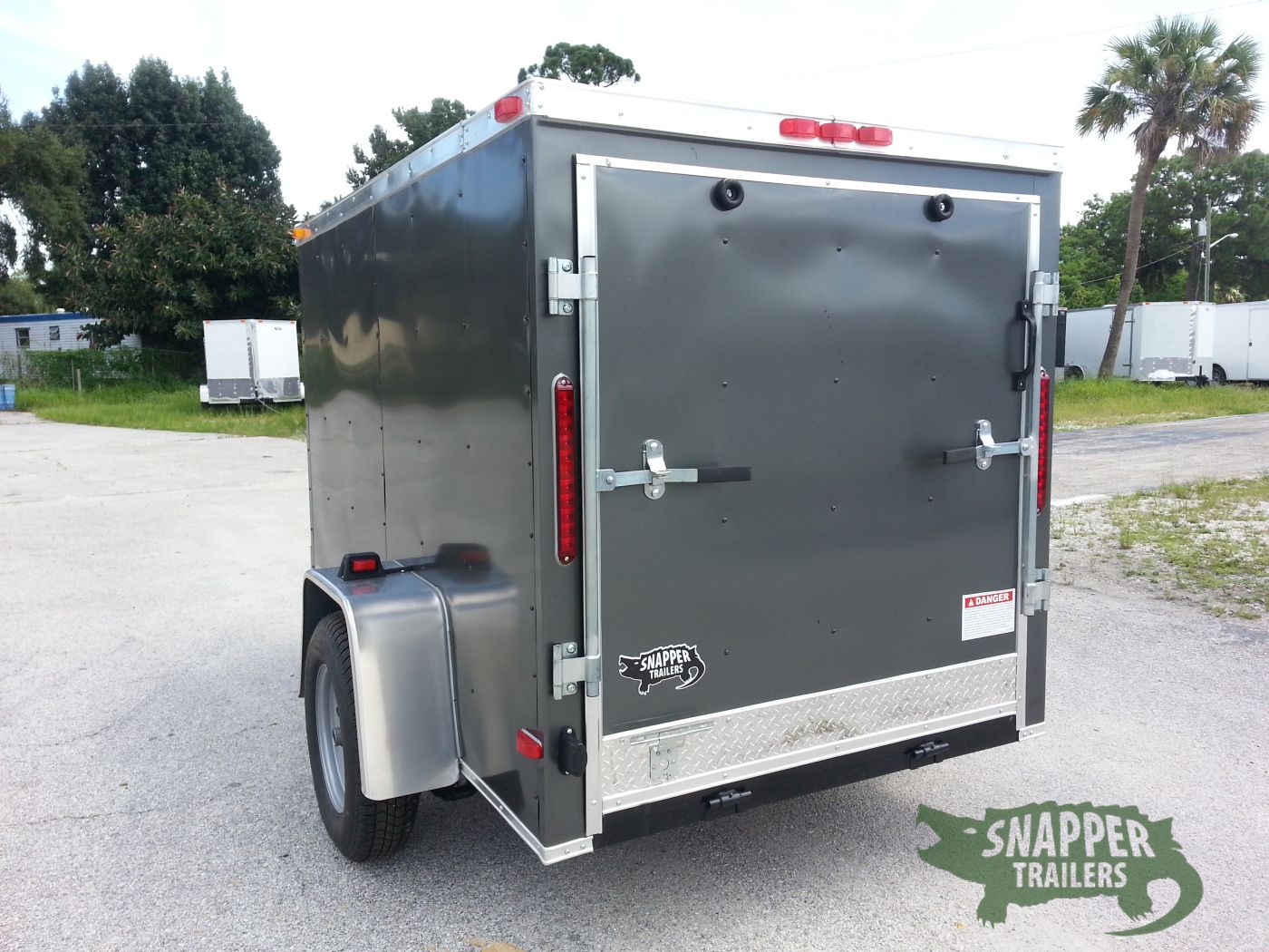 5ftx8ft Single axle multi purpose enclosed trailer put it in your garage. Charcoal Grey Exterior Rear Ramp Door convenient 24in Side door