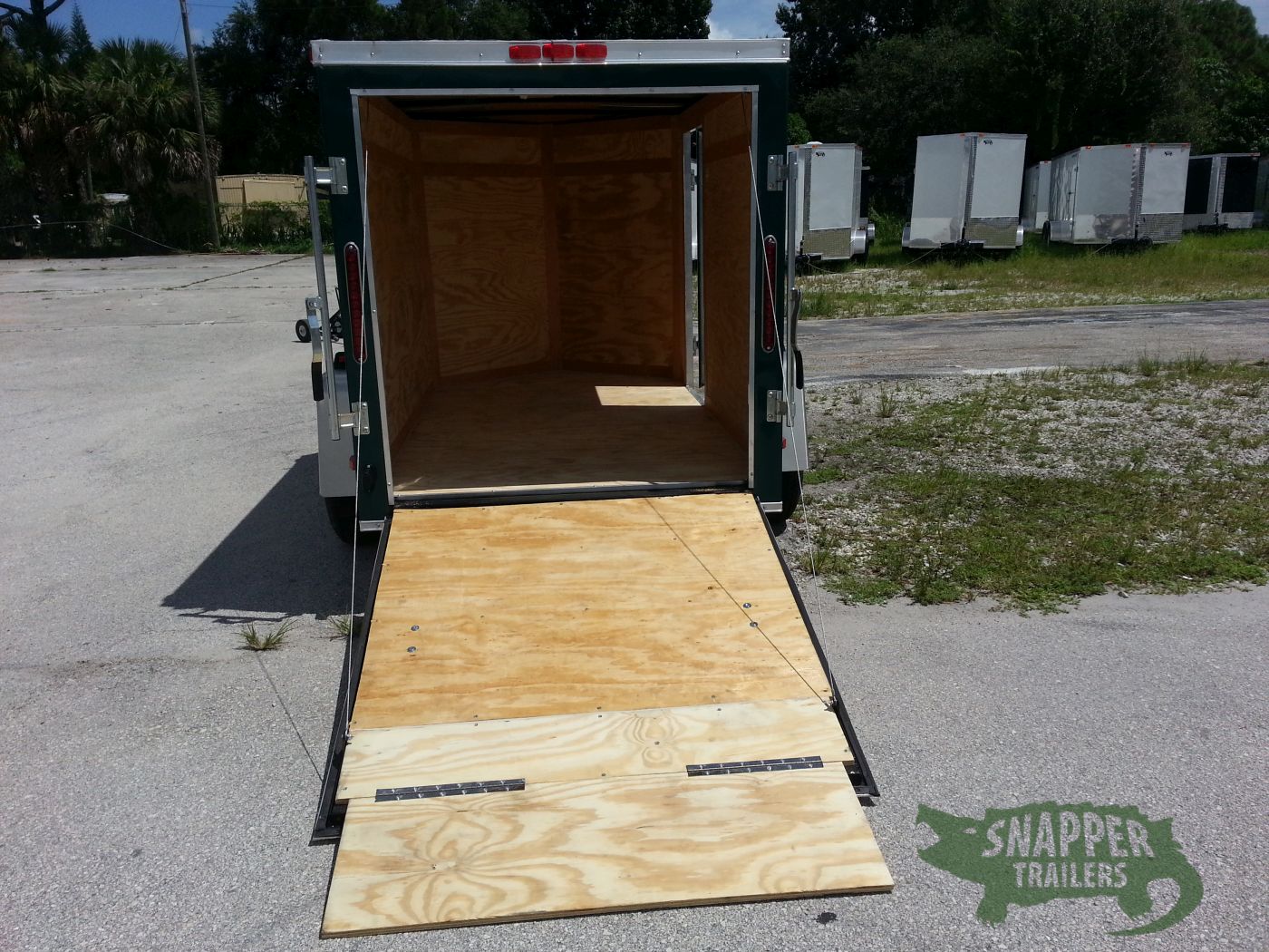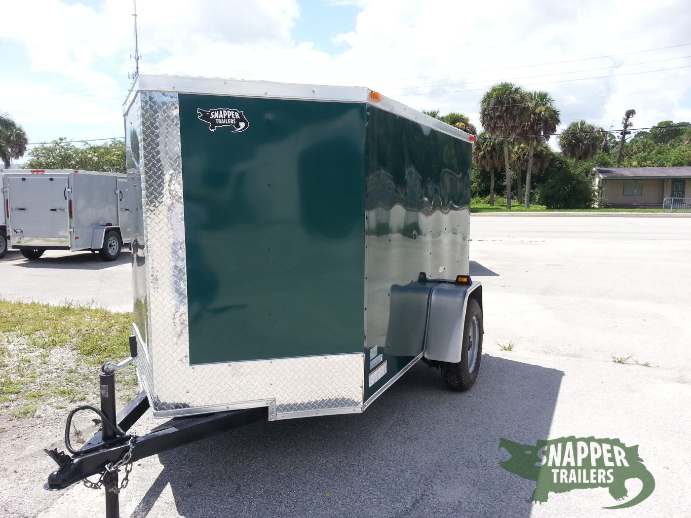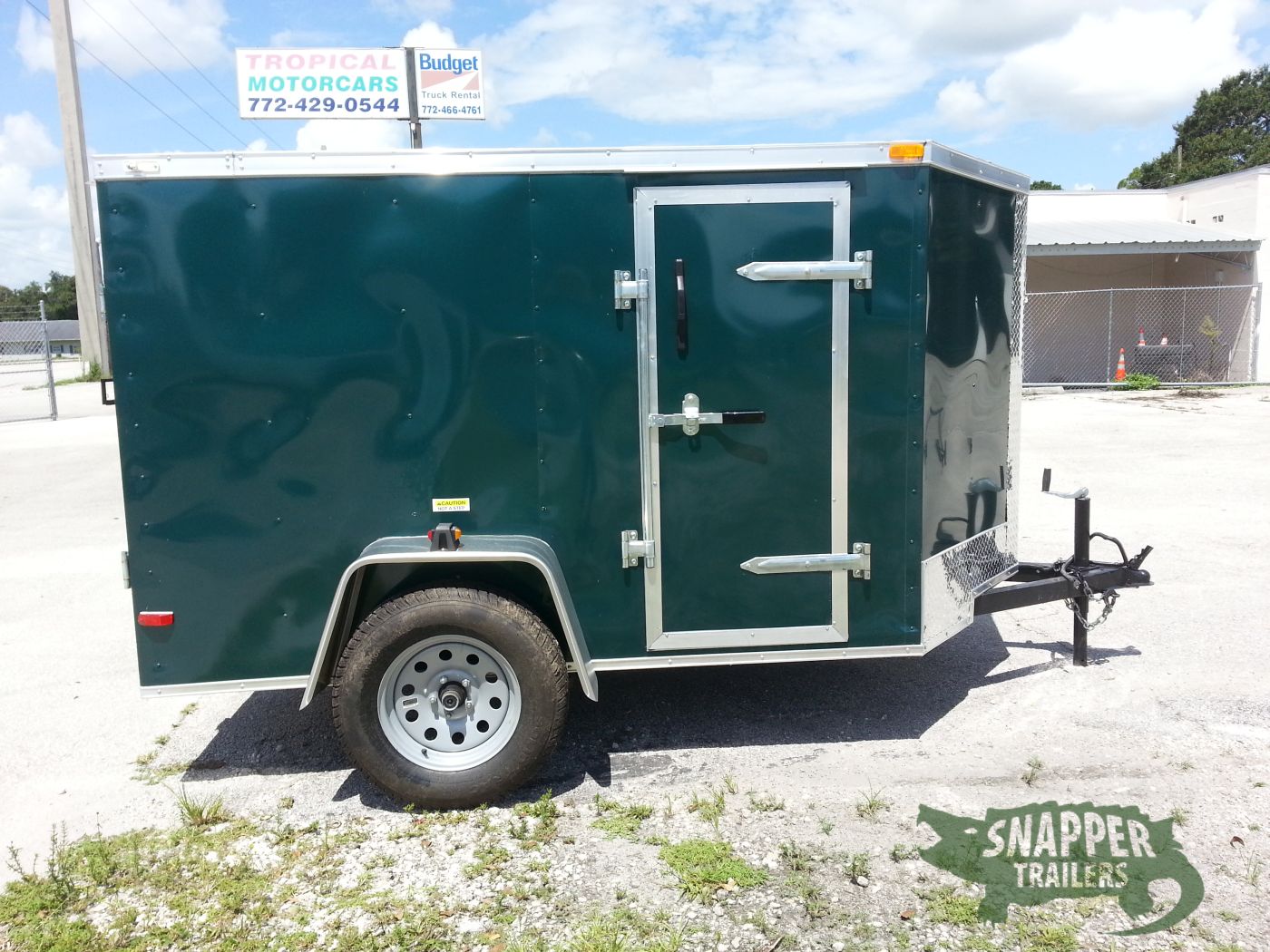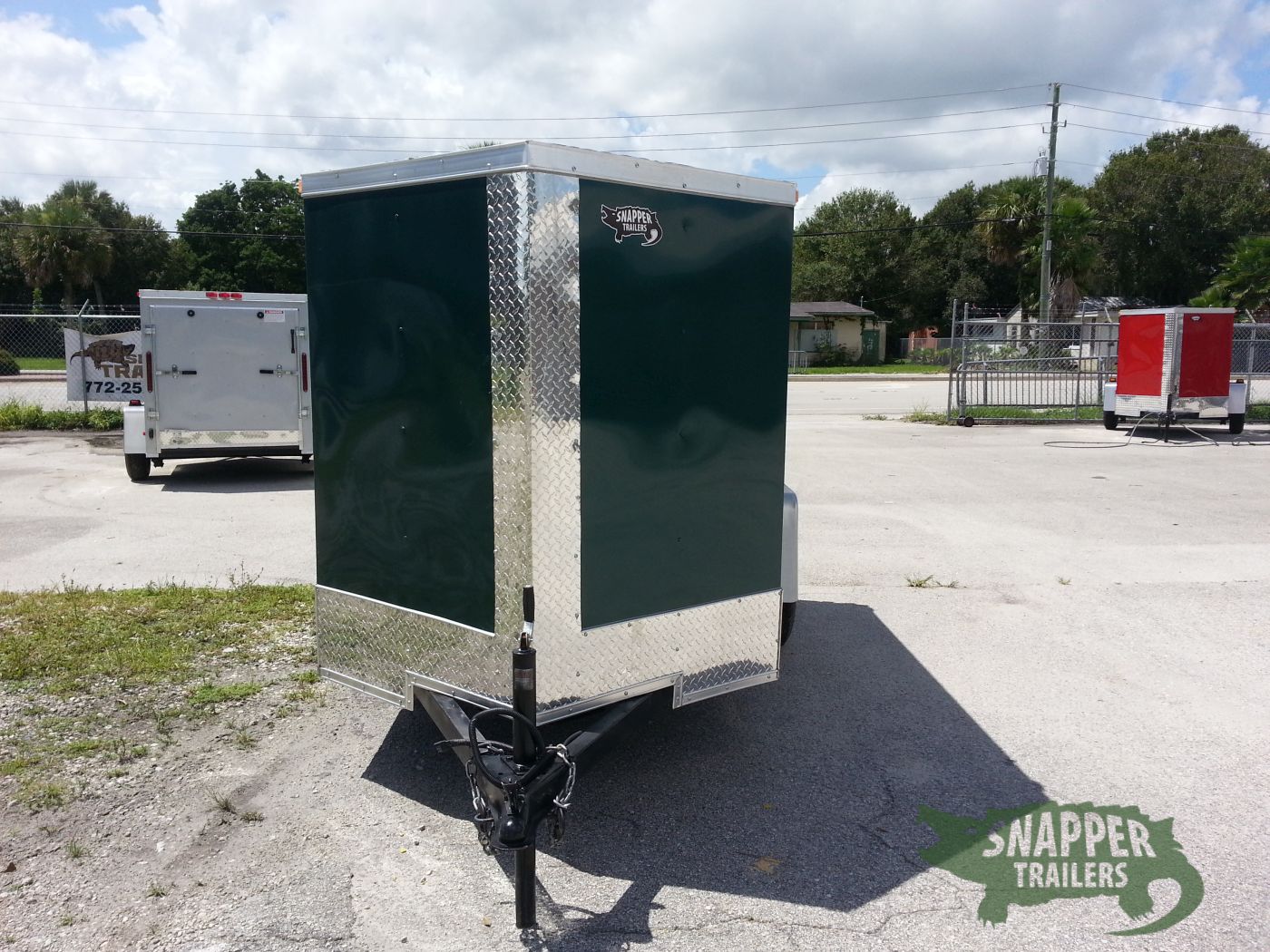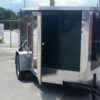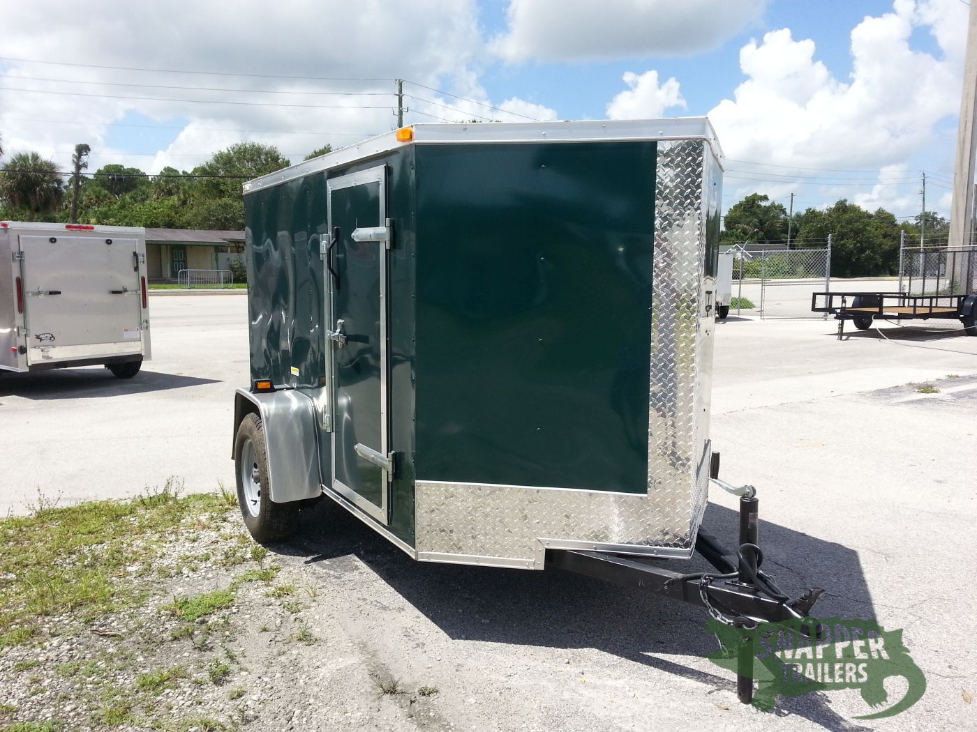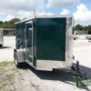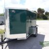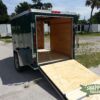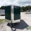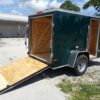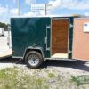 Emerald green 5×8 Enclosed Single axle Trailer Great for hunting & camping easy to load & unload ramp door w/ a side access door & aerodynamic V-nose Front
