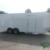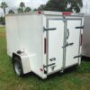 5ft wide 8ft long plus 2ft v-nose front. Easy access Double rear barn door Snow white in color 77in overall height W/ front side generator door access