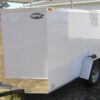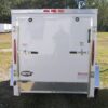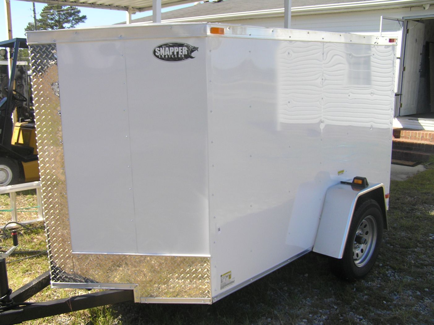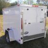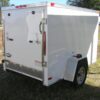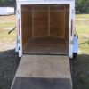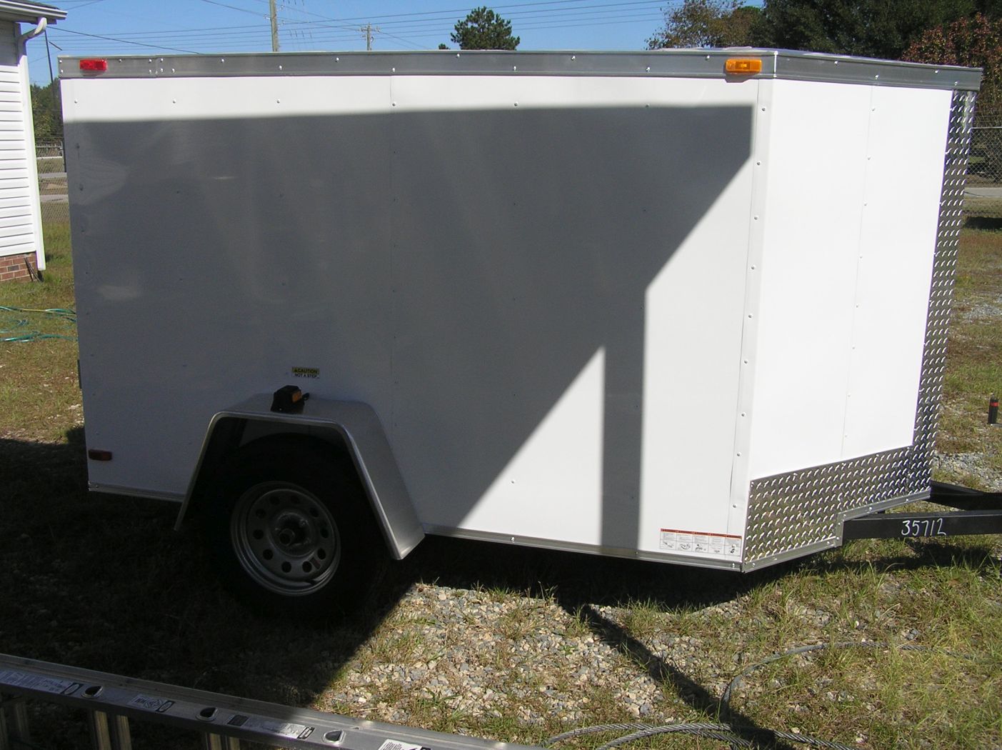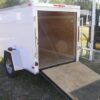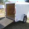Low Profile Enclosed 5 by 8 Cargo trailer 77in overall height Rear easy load Spring assisted ramp door with secure bar locks White in color L.E.D Tail lights