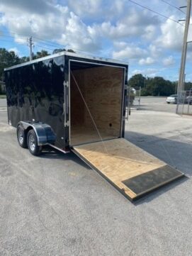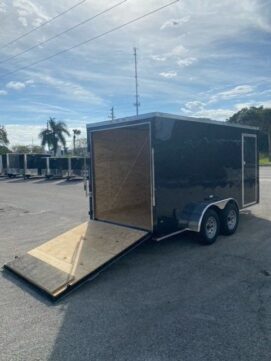 Basic 6×14 Tadem Axle Trailer – Black, with a Ramp, and Side Door