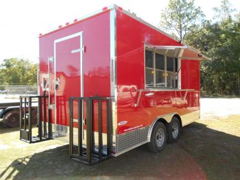 This classy medium red trailer with a small porch area. Complete with concession window, rear [...]