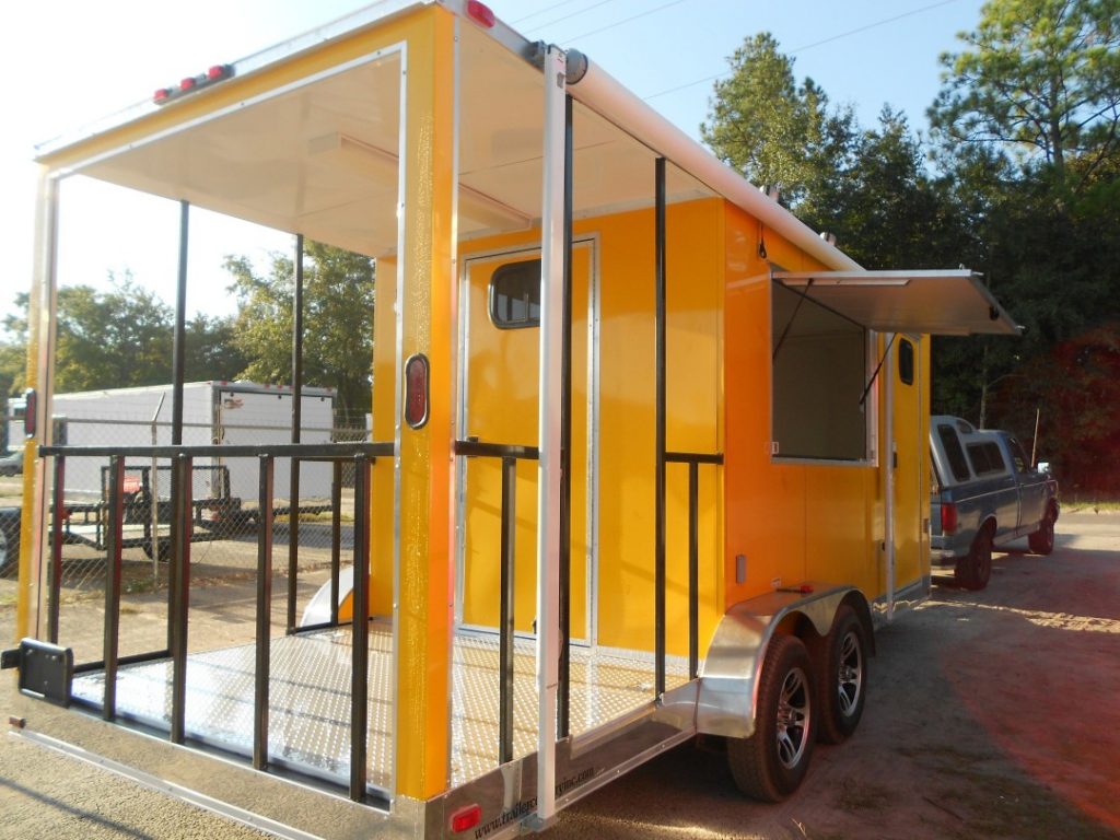 Check out this catchy yellow porch concession trailer with a sharp checkboard flooring, mag wheels, electrical package, awning and LED lighting all around. It doesn’t get much nicer than this. Contact us today for a free quote or fill out the form below to make it nice and easy. #trailerspotlight #trailers